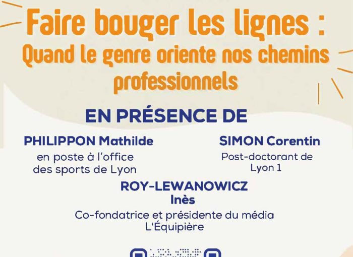 Les étudiant·es du Master 2 EGAL’APS (Égalité, Genre, Activité Physique et Sport) de l’Université Lyon 1 ont le plaisir de vous inviter à une table ronde autour des parcours inspirants de professionnel·les dont les trajectoires croisent les questions de genre et de sport. 🌈